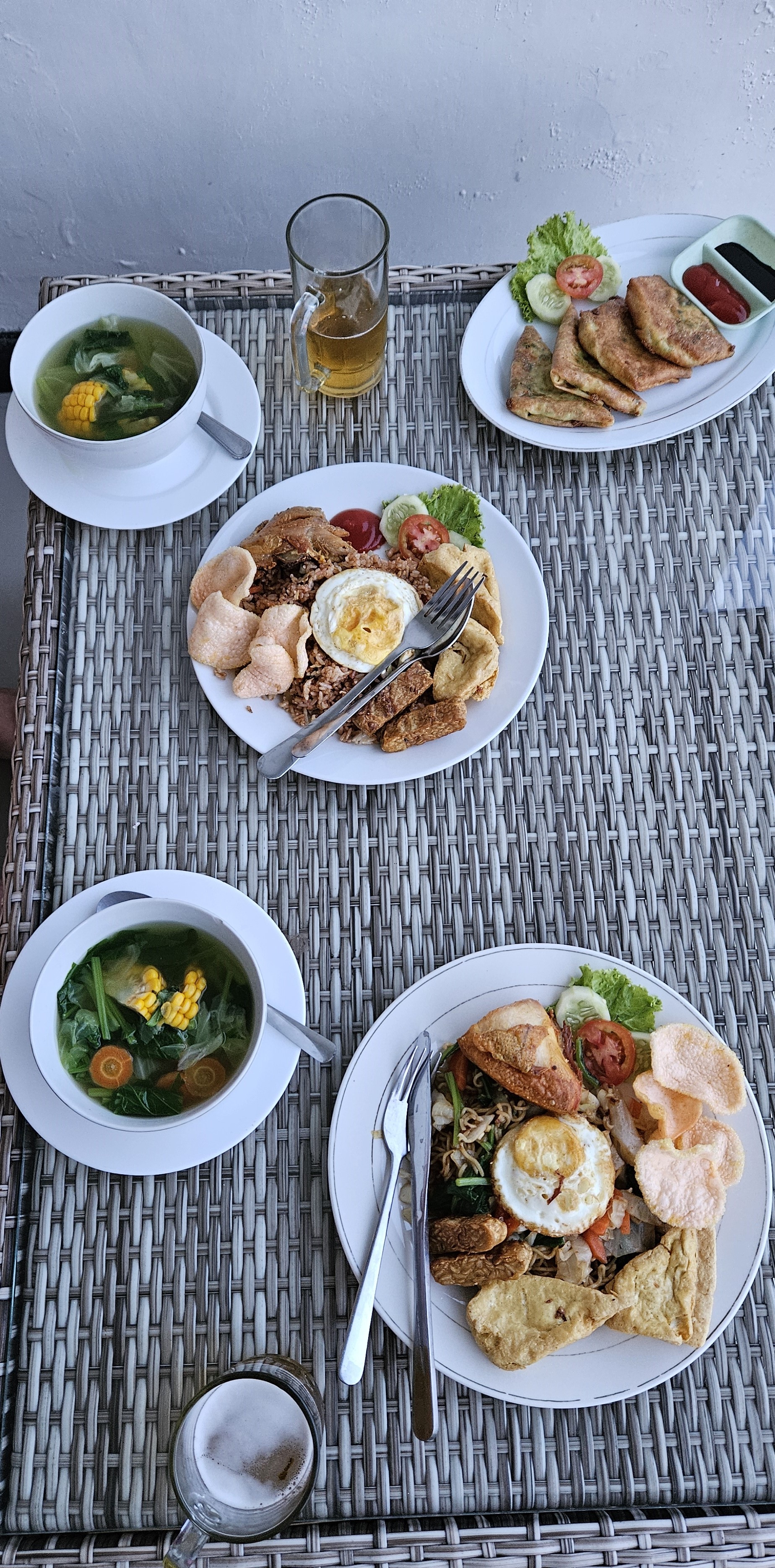 Mają tu też kuchnię – śniadania były w cenie, ale można było zamówić jedzenie w bardzo fajnych cenach. Jedliśmy dwa razy i do tego piwo i za całkowity rachunek za jedzenie z podatkiem i serwisem wyniósł 448.000 IDR poniżej 115 zł, a porcje były naprawdę spore.